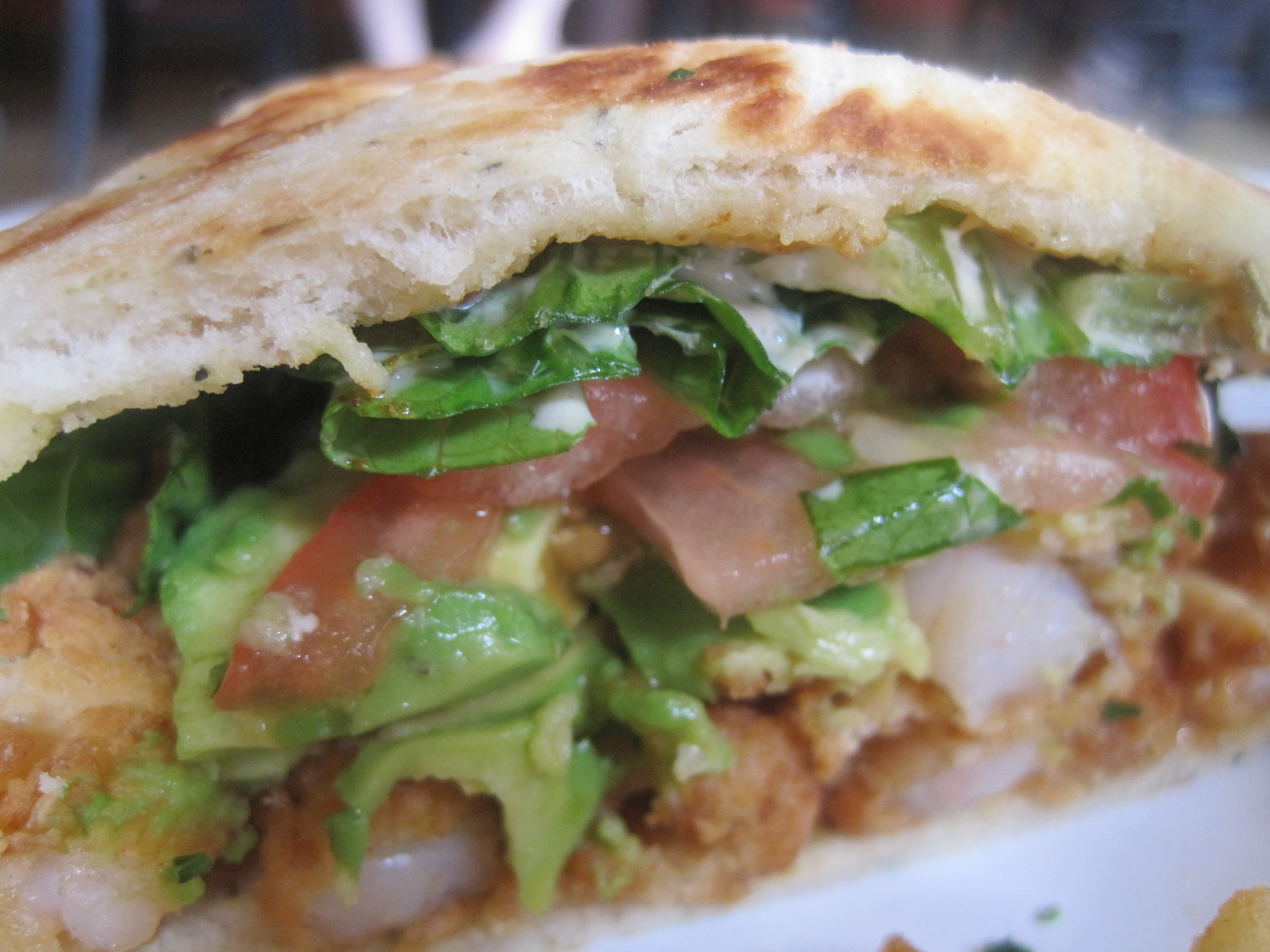 The Smoked Chile’ Fried Shrimp Sandwich was my choice for the entree’…Oh my gosh! Lightly fried Jumbo Gulf Shrimp dressed with ripe avocado & tomato with crispy fresh shredded romaine lettuce, with a softly smoked chile’ mayo – all sitting beautifully on a perfectly toasted Italian Focaccia flatbread! Well, it was to die for…