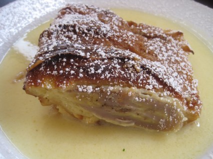This is Bonnie Bell’s freshly made bread pudding with strips of ripe bananas running throughout each piece, then topped with a warm light rum cream sauce…If you love Bananas Foster, you will love this…