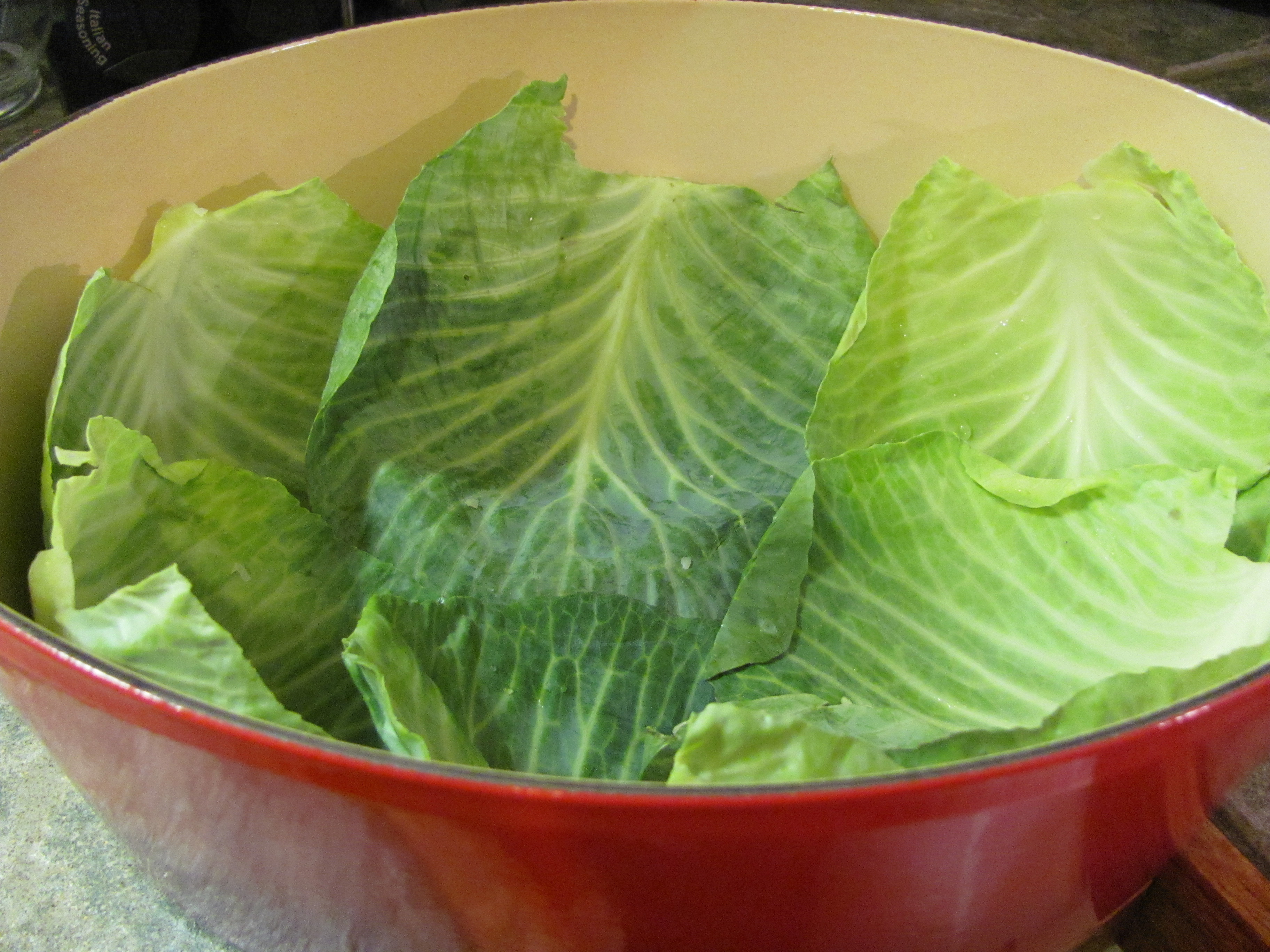 Have a large cookie sheet or some other shallow pan near the stove to put the leaves of cabbage on;