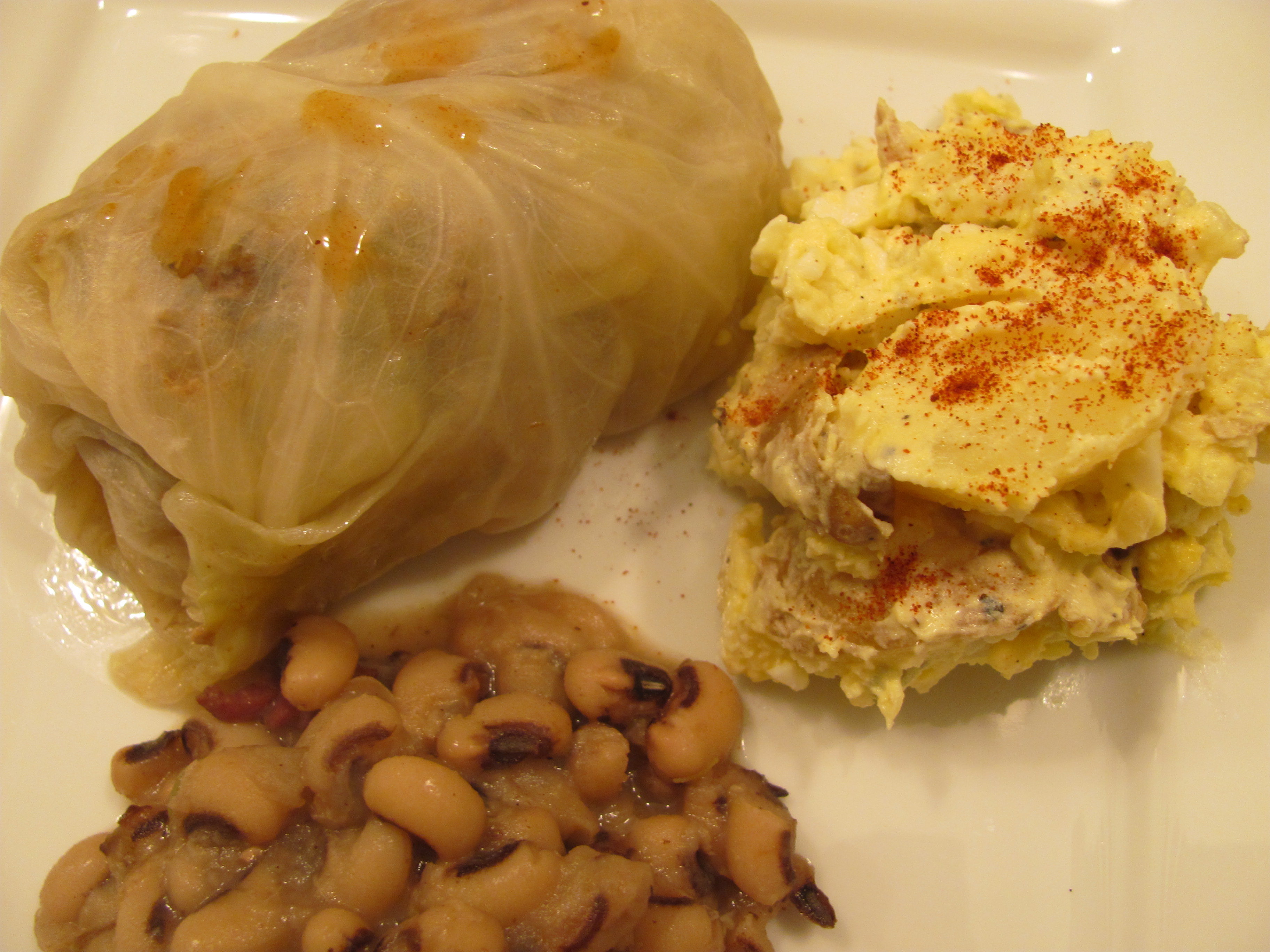 So what happens when my husband and I decide (for the first time ever!) to go out-of-town for the whole New Year holiday? Meaning that I won’t be home to make the “Annual Cabbage Roll Feast”… (This always consists of cabbage rolls, black-eyed peas, potato salad and a Honey Ham.)