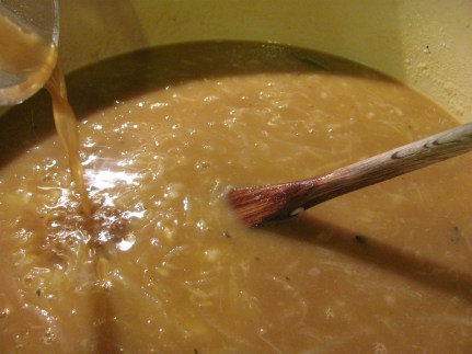 Stir in Bouquet Garni or dried herbs and pepper – you shouldn’t need any additional salt, because the sausage contains a lot of salt