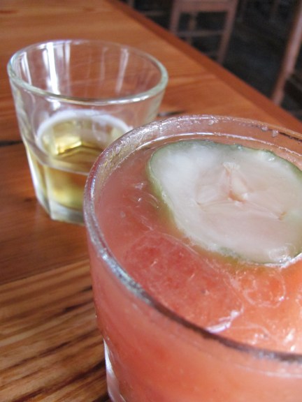 Our wonderful, bright and knowledgable waitress told us all about their very unique and delicious Bloody Marys (served with a shot of Schlitz Beer, in honor of Chef Alex Harrell’s father’s favorite beer!)…we were sold! We are always game to try anything with a story – and we love Bloody Mary’s….