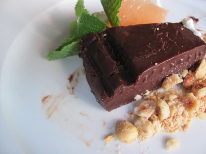 A fabulous version of the classic flourless chocolate cake…”The Black Beast” – Dense rich chocolate with a great side of crunchy hazelnuts, cream and a little slice of sweet local grapefruit…just when we thought we couldn’t eat another bite! It was devoured – quickly!