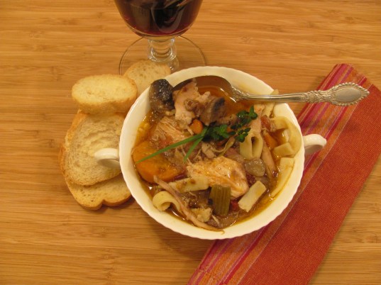 Most people, today, use a hen or several small chickens to make this dish. But, not here – I had to find the real deal…nothing but a rooster was going to make me happy. Of course, most markets are not selling roosters (I’ll bet that it has been a while since you saw a nice rooster nestled between the chicken breasts and pork chops at Albertsons!) – but, just as I was in the middle of mad googling to see where I could buy one (not a whole case!), I stumbled back on Gotreaux’s Family Farm’s website…they are selling, not only the most wonderful organic chickens and lamb, but – yes – roosters and guinea hens!