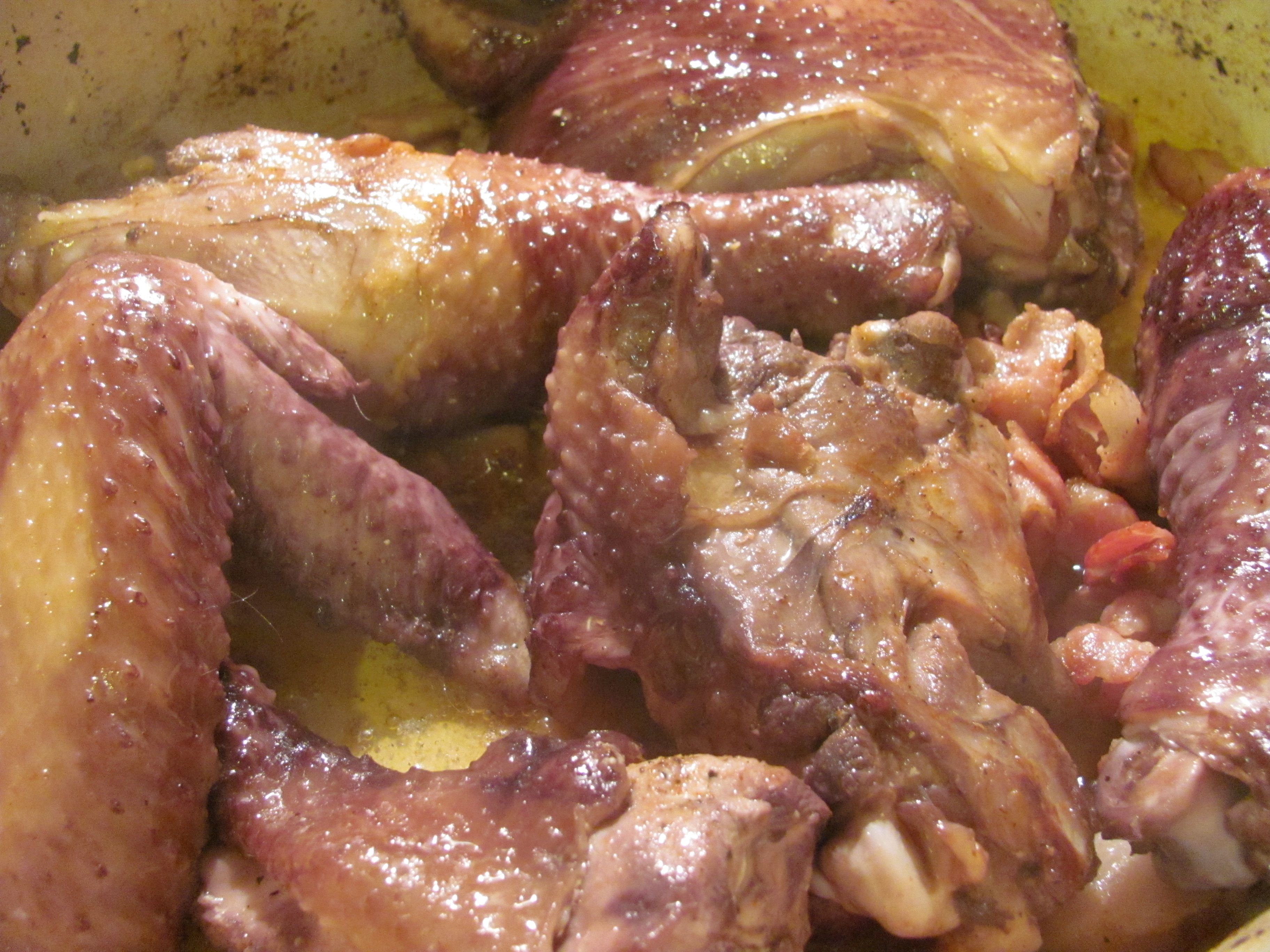 There is a little tidbit that you should know, if you ever want to cook this fabulous dish – you have to marinade “the bird” for at least 24 hours, in a whole bottle of red wine, to really get the flavors to come through. Just think ahead! So worth it…