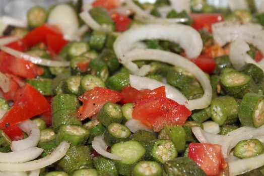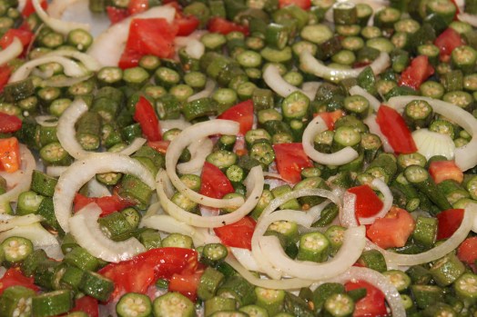Lamb was not something that we ate when I was growing up…not sure why – it just was never “the meat of choice”! And “Roasted Okra” would have never entered my mother or grandmother’s mind…smothered or pickled – Yes…but not “roasted”! So, this delicious recipe and combination comes without a history – just from my love of fresh locally farmed ingredients. (And, I am getting sooo spoiled!)