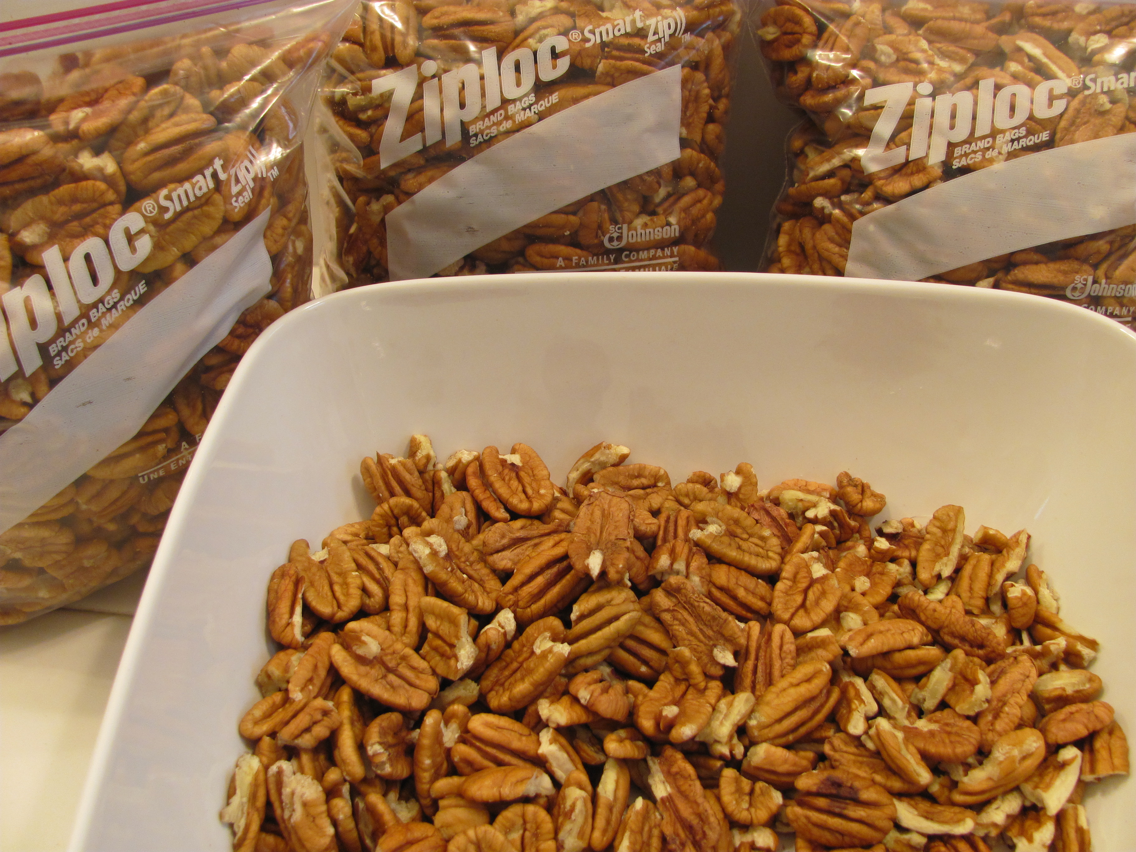 Then, you can put them in Zip Lock bags and store in the freezer until next pecan season…
